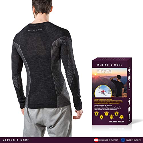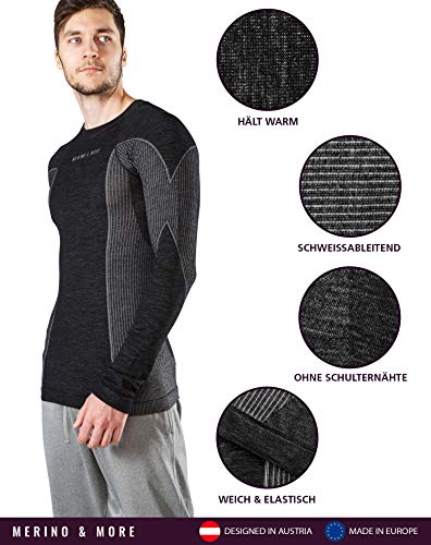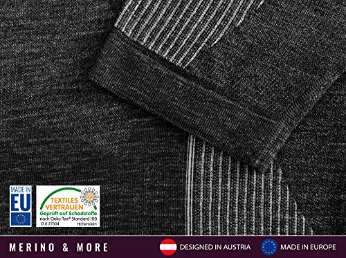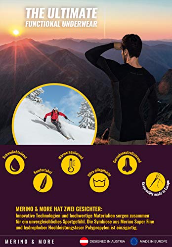 Das langarm Shirt von Merino & More besteht aus sehr feiner Merinowolle und der leistungsfähigen Faser Polycolon. Es gibt keine Schulter- und Seitennähte und die Produktion wird in Europa vorgenommen.